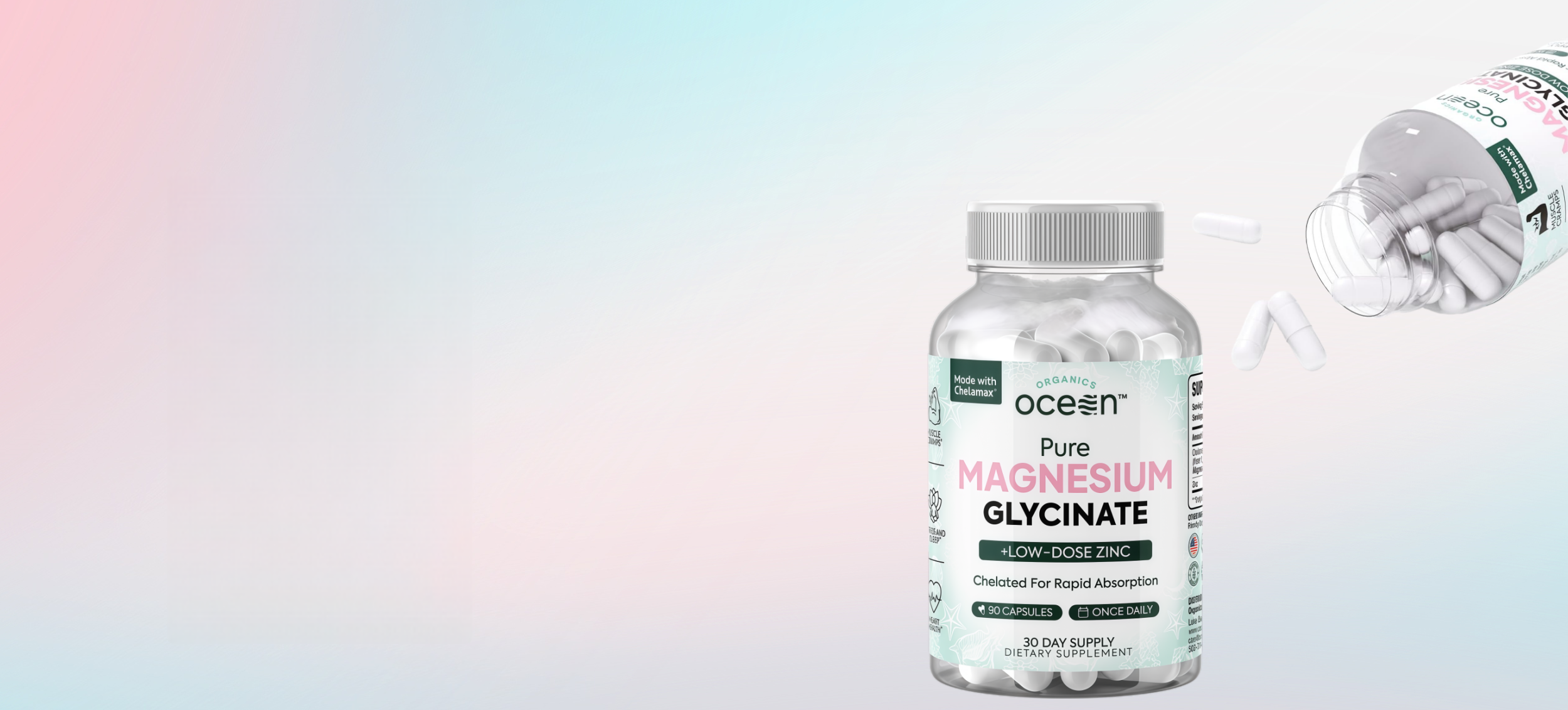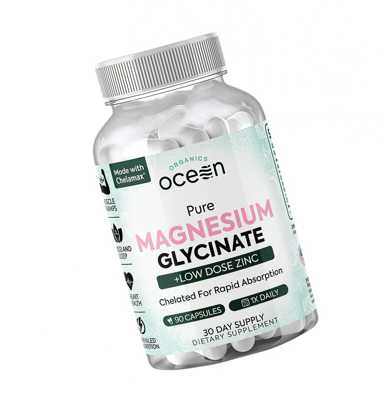 Powerhouse support for muscle cramps, sleep, and heart health: People takemagnesium to support sleep and as a supplement for muscle cramps because it isessential for bodily functions. Headaches, anxiety, and mental tension can help youachieve restful sleep with Organics Ocean Magnesium Capsules.